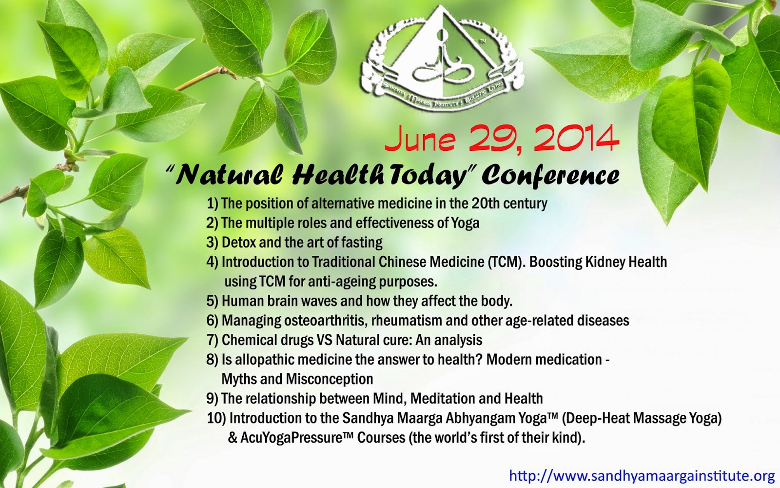 Sandhya Maarga Holistic Living Academy will be organising a conference titled "Natural Health Today" this coming June 2014 to mark the end of our academic year calendar. Along with this conference is our certificate presentation ceremony to mark the achievement(s) of our students.